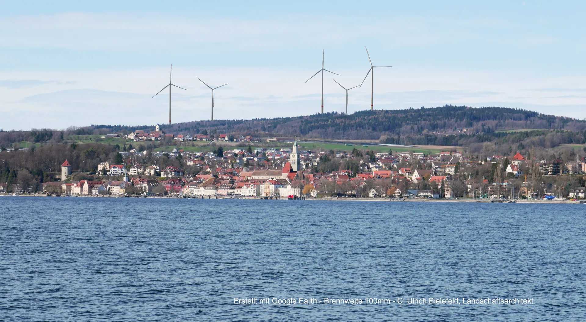 Die in der strategischen Umweltprüfung beim Schutzgut „Landschaft“ vorgenommene Bewertung („keine erkennbar erhebliche Beeinträchtigung“) ist für uns, angesichts der Einzigartigkeit und der Schönheit des westlichen Bodenseegebietes, nicht nachvollziehbar und muss in diesem besonderen Bodenseeuferbereich entsprechend überarbeitet werden. In der damaligen, bereits erwähnten Stellungnahme der Stadt Überlingen vom 13.09.2012 wird deutlich gemacht, dass grundsätzlich alle Standorte im Bodenseebecken und den angrenzenden Höhenzügen abgelehnt werden und ein Ausschlussgebiet rund um den Bodensee anzustreben ist. Auch ist der Höhenzug Hochbühl visuell der ersten Reihe zuzuordnen und daher auszuschließen.